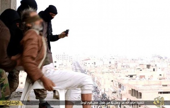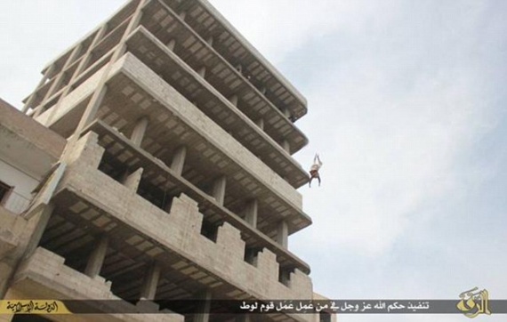 Σοκαριστικές φωτογραφίες από φανατικούς ισλαμιστές, οι οποίοι ρίχνουν έναν ομοφυλόφιλο άντρα από ένα κτίριο και στη συνέχεια τον λιθοβολούν μέχρι θανάτου, δημοσίευσε το Παρατηρητήριο Ανθρωπίνων Δικαιωμάτων στην Συρία.