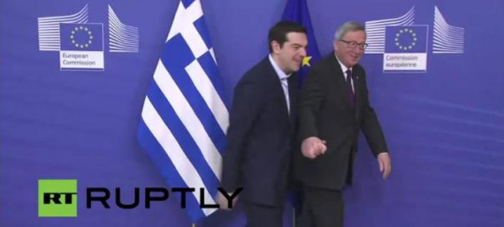 Ο κατά μία 20ετία μεγαλύτερός του πολιτικός του Λουξεμβούργου πήρε στη συνέχεια από το χέρι τον Έλληνα πρωθυπουργό και χαμογελώντας ως απάντηση στα γέλια των δημοσιογράφων, τον οδήγησε προς τον χώρο συνάντησής τους.