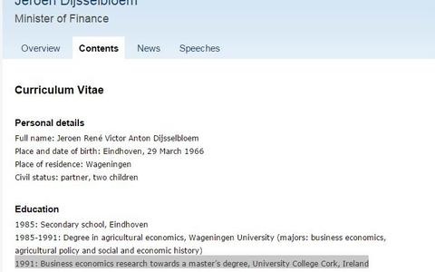 Συγκεκριμένα, το βιογραφικό του Ολλανδού υπουργού Οικονομικών, αναγράφονταν – μεταξύ των άλλων – και πτυχία από το University College Cork. Ωστόσο, το ίδιο το πανεπιστήμιο ανακοίνωσε το 2013, ότι ουδέποτε έλαβε κάποιο είδους πτυχίου από το Cork.