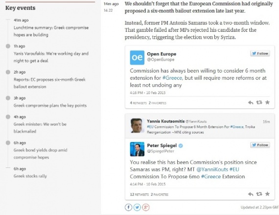 Υπενθυμίζεται ότι χθες, δημοσιογράφος του Channel 4 επιβεβαίωσε τις καταγγελίες Τσίπρα, ότι ο Αντώνης Σαμαράς απέρριψε την πρόταση για 6μηνη παράταση του Μνημονίου, επιμένοντας σε δίμηνη.