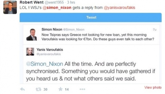 Ο Γιάνης Βαρουφάκης «σήκωσε το γάντι», όπως συνηθίζει άλλωστε, και απάντησε στο Βρετανό αρθρογράφο: «Όλοι την ώρα μιλάμε. Και είμαστε απολύτως συγχρονισμένοι. Κάτι που θα είχες αντιληφθεί, αν άκουγες εμάς και όχι τι λένε οι άλλοι ότι λέμε».