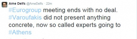 Όπως αναφέρει ο ανταποκριτής του πρακτορείου ειδήσεων Bloomberg στο Βερολίνο Αρν Ντελφς, η πρόταση Βαρουφάκη δεν ήταν «συμπαγής». Ως επόμενο βήμα πάντως, καταγράφεται η έλευση τεχνοκρατών εκ μέρους του Euroworking Group στην Αθήνα, οι οποίοι σε συνεργασία με την ελληνική πλευρά θα μελετήσουν την πρόταση της Κυβέρνησης.