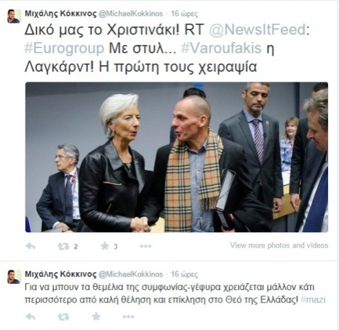 Ιδίως για τα…χαμόγελα και τη θερμή χειραψία με τη Κριστίν Λαγκάρντ οι χρήστες του twitter ανέφεραν πως «το κλίμα ζεστάθηκε».