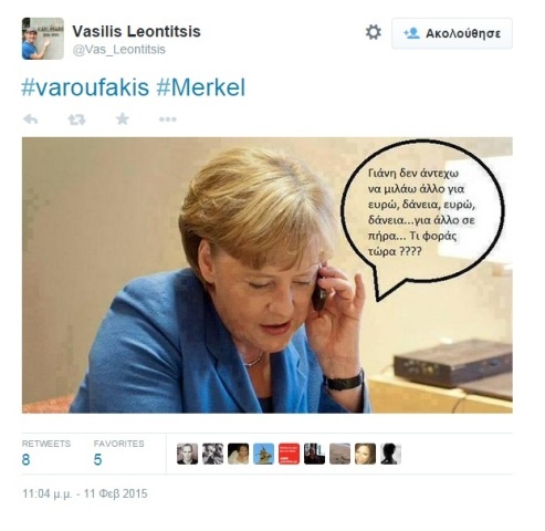 Και φυσικά από το σερί φωτογραφικών σχολίων για τις επαφές του Γιάνη Βαρουφάκη δεν θα μπορούσε να απουσιάζει και η Γερμανίδα καγκελάριος