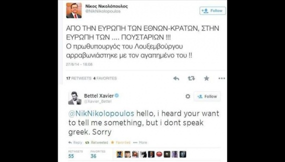 Ο Μπετέλ είχε ανταπαντήσει τότε με νέο tweet: «Oι σχέσεις μεταξύ Ελλάδας και Λουξεμβούργου με τον έλληνα πρωθυπουργό είναι τέλειες και δεν θα επηρεαστούν από τα σχόλια ενός μεμονωμένου πολιτικού. Καλησπέρα».