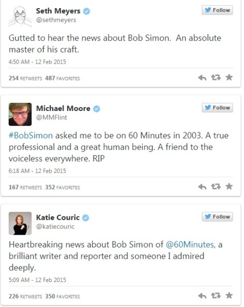 Σε τροχαίο δυστύχημα έχασε τη ζωή του ο βετεράνος ανταποκριτής του CBS News και της εκπομπής «60 Λεπτά», Bob Simon, σε ηλικία 73 χρόνων.