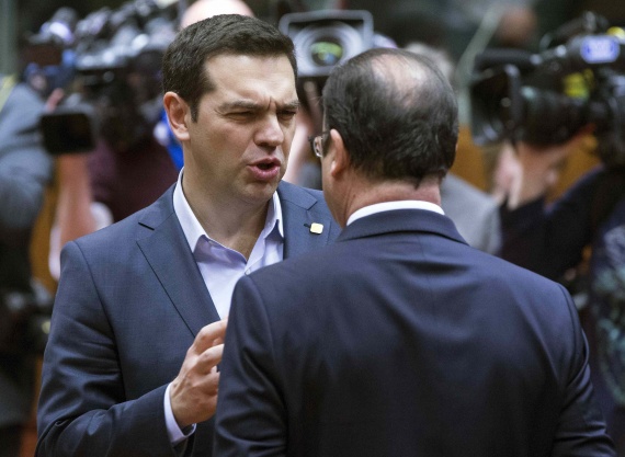 Στη συνέχεια ο Αλέξης Τσίπρας αντάλλαξε χειραψία και με τον Φρανσουά Ολάντ (ο οποίος τον τράβηξε προς το μέρος του) και είχε σύντομη συζήτηση μαζί του, ενώ με τον «μεσογειακό» Ρέντσι το κλίμα ήταν πιο θερμό καθώς ο Ιταλός πρωθυπουργός αγκάλιασε τον Έλληνα ομόλογό του και όταν ο Αλέξης Τσίπρας εμφανώς αγχωμένος από αυτή την παρθενική του εμφάνιση σε σύνοδο Κορυφής, κάθισε δίπλα του, ο Ρέντσι έδειξε να του δίνει κατευθύνσεις για τη διαδικασία.