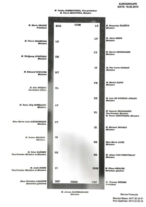 Κατά τη διάρκεια της συνεδρίασης, κύκλοι της ελληνικής κυβέρνησης ανέφεραν ότι το κείμενο που παρουσίασε ο Γ.Ντάισελμπλουμ ως βάση της συζήτησης αλλάζει άρδην τα δεδομένα, καθιστώντας πρακτικά ανέφικτη την επίτευξη συμφωνίας στην παρούσα συνεδρίαση.