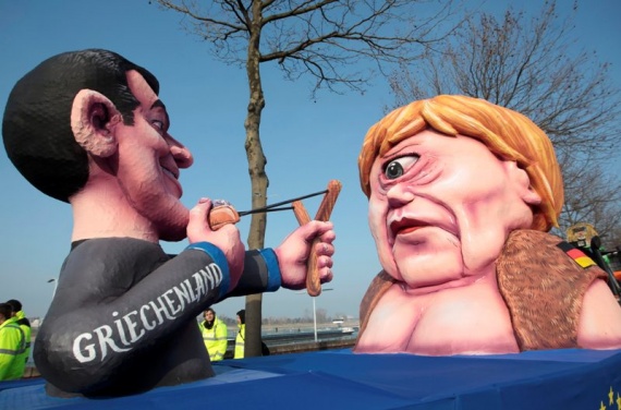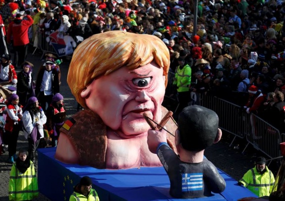 Η καρναβαλική περίοδος βρίσκεται στην κορύφωσή της και όπως παντού έτσι και στην Γερμανία τα άρματα των παρελάσεων, στηρίζονται σε θέματα της επικαιρότητας. Οι Γερμανοί καρναβαλιστές, αποφάσισαν μάλιστα να απεικονίσουν τη διαπραγμάτευση ανάμεσα στην ελληνική πλευρά και τους δανειστές ως εξής:
