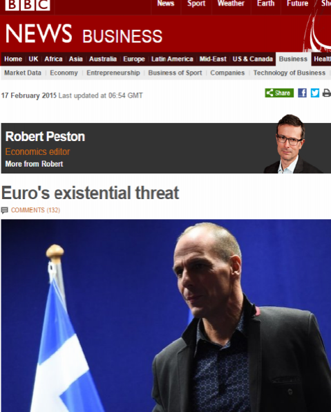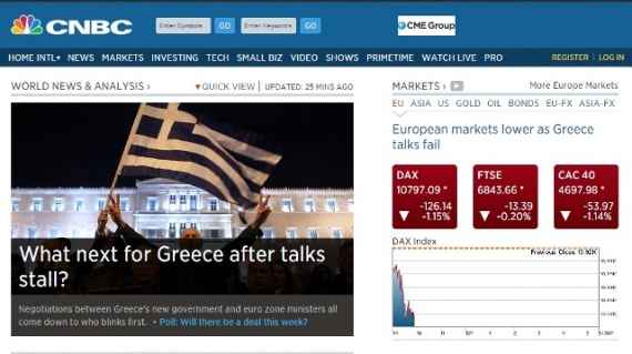 Στα διεθνή ΜΜΕ αποτυπώνονται οι εκτιμήσεις οικονομικών αναλυτών που θεωρούν ότι η πιθανότητα εξόδου της Ελλάδας από την Ευρωζώνη είναι στο υψηλότερο επίπεδο από το 2012, ενώ γίνονται εκτενείς αναφορές στην πτώση του ευρώ που έφτασε έως και τα 1,13 δολάρια, μετά το χθεσινό «ναυάγιο» του Eurogroup.