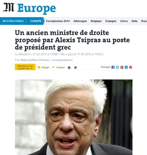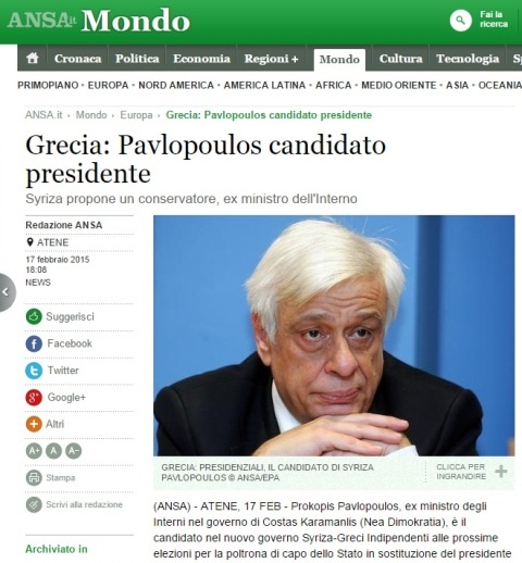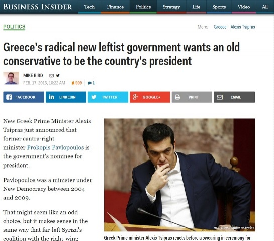 «Η νέα αριστερή κυβέρνηση της Ελλάδας θέλει έναν παλιό συντηρητικό στη θέση του νέου Προέδρου της χώρας», σχολιάζει το αμερικανικό Business Insider.
