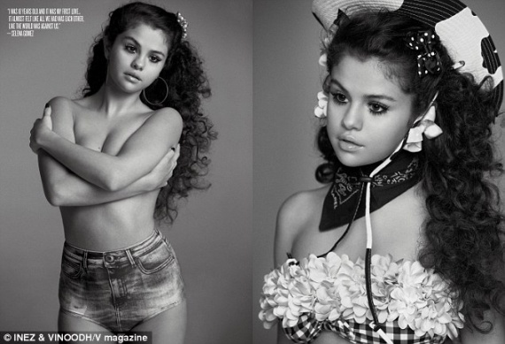 Η νέα φωτογράφηση για το περιοδικό «V»της ηθοποιού-τραγουδίστριας Σελένα Γκόμεζ θεωρήθηκε απαράδεκτη και ενοχλητική, ακόμα και από τους ίδιους τους φαν της. Ο λόγος δεν είναι η αισθησιακή φωτογράφηση, όπου ποζάρει μόνο με ένα τζιν σορτς και καλύπτει το στήθος με τα χέρια της. Αυτό που ενόχλησε είναι το γεγονός ότι το στυλ παραπέμπει σε Λολίτα, κάνοντας την 22χρονη να μοιάζει πολύ μικρότερη από την ηλικία της και επομένως, να ενοχλεί ο αισθησιασμός και οι σέξι πόζες.