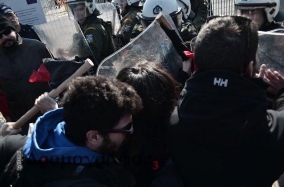 Η αστυνομία επιχείρησε με χρήση χημικών να απωθήσει τους διαδηλωτές και προχώρησε σε δύο προσαγωγές.