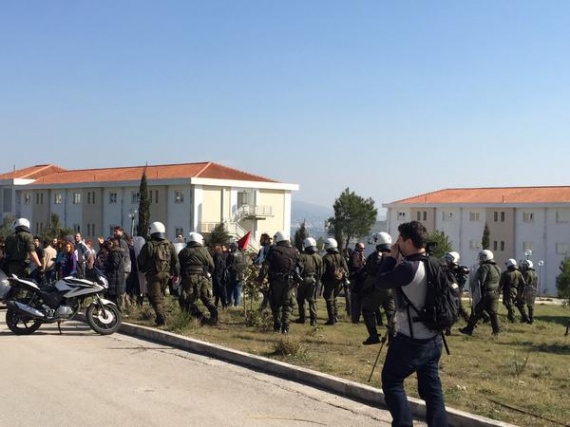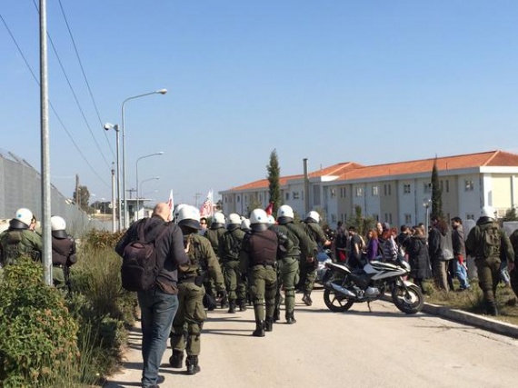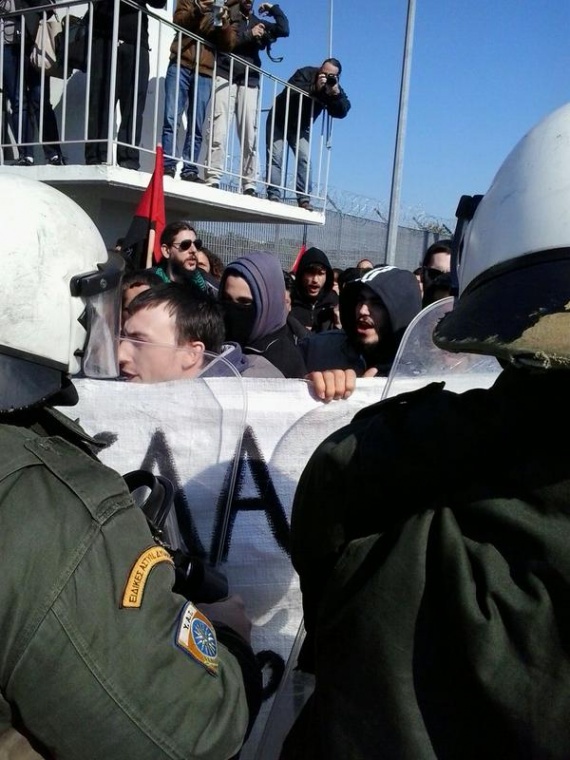 Ένταση επικράτησε στην Αμυγδαλέζα όταν κάποια από άτομα που συμμετείχαν στην πορεία διαμαρτυρίας που διοργανώθηκε ενάντια στα κέντρα κράτησης, έσπασαν τον αστυνομικό φραγμό και επιχείρησαν να φτάσουν στην είσοδο του κέντρου κράτησης.