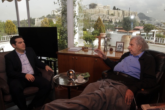 Ολοκληρώθηκε η συνάντηση του Αλέξη Τσίπρα με τον Μίκη Θεοδωράκη, τον οποίο ο πρωθυπουργός επισκέφθηκε στην οικία του.