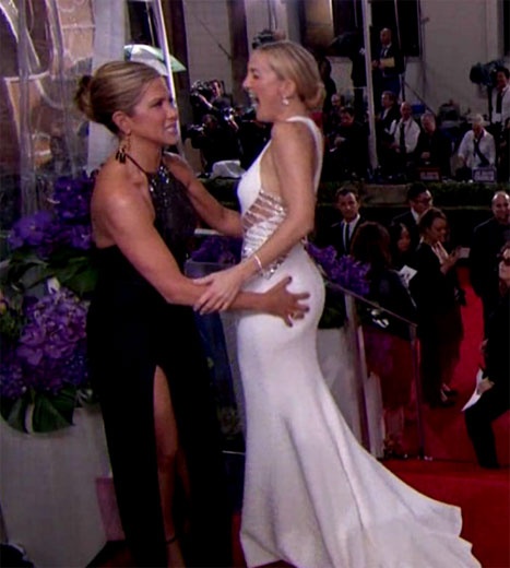 Όλα ξεκίνησαν στην απονομή των Χρυσών Σφαιρών, όταν η Άνιστον έπιασε επιδεικτικά τα οπίσθια της Κέιτ Χάντσον και είπε στην κάμερα: «Έπρεπε να το κάνω, συγγνώμη».
