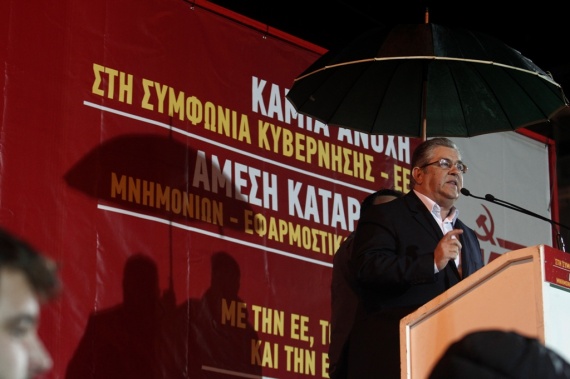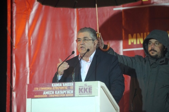 Αίσθηση προκάλεσε η επιλογή των διοργανωτών της μεγάλης αποψινής συγκέντρωσης του ΚΚΕ, να μην τοποθετήσουν μία τέντα ή άλλους είδους κινητή κατασκευή, πάνω από το πόντιουμ απ’ όπου εκφωνούσε την ομιλία του ο Γενικός Γραμματέας του κόμματος, Δημήτρης Κουτσούμπας.