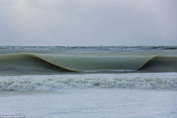 Οι πολικές θερμοκρασίες που επικρατούν στην περιοχή, που σπάνε το ένα ρεκόρ μετά το άλλο, έκαναν ακόμα και τα κύματα να μοιάζουν παγωμένα.