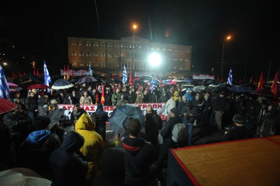 Σε συγκέντρωση στο Σύνταγμα προχώρησε το ΚΚΕ, ενάντια στη συμφωνία της κυβέρνησης στο Eurogroup, την οποία χαρακτηρίζει επέκταση του μνημονίου, και προς υποστήριξη της πρότασης νόμου για κατάργηση των μνημονίων και των εφαρμοστικών νόμων, που κατέθεσε στη Βουλή.