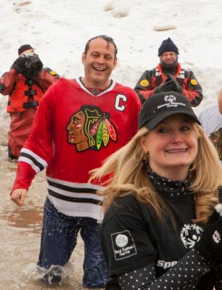 Πριν από μερικές μέρες, η Lady Gaga μαζί με τον αρραβωνιαστικό της Τέιλορ Κίνεϊ αψήφησαν το κρύο και βούτηξαν στα παγωμένα νερά της λίμνης Μίτσιγκαν για να συγκεντρώσουν χρήματα σε εκδήλωση που πραγματοποιήθηκε για τους Special Olympics. Σύμφωνα με το Associated Press, 4.500 άτομα συμμετείχαν στον έρανο, συμπεριλαμβανομένου και του 44χρονου ηθοποιού Βινς Βον, ο οποίος βούτηξε στη λίμνη φορώντας την φανέλα των Σικάγο Μπλάκχοκς.