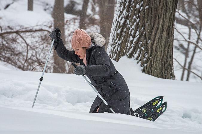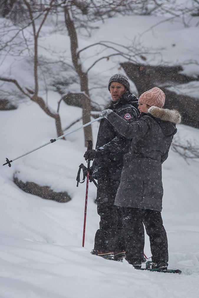 Στη χιονισμένη Νέα Υόρκη βρίσκεται η Τζούλιαν Μουρ. Ο λόγος για τα γυρίσματα της νέας της ταινίας «Maggie’s Plan» σε σκηνοθεσία Ρεμπέκας Μίλερ. Η πρόσφατα βραβευμένη με Όσκαρ ηθοποιός έπρεπε να φορέσει πέδιλα του σκι για τις ανάγκες της ταινίας αλλά όπως φαίνεται δεν … το κατέχει το άθλημα. Ευτυχώς δίπλα της βρισκόταν και ο συμπρωταγωνιστής της Ίθαν Χοκ, ο οποίος την βοήθησε να σηκωθεί και να συνεχίσουν το περπάτημά τους στο Mountain State Park σαν να μην τρέχει τίποτα.
