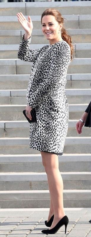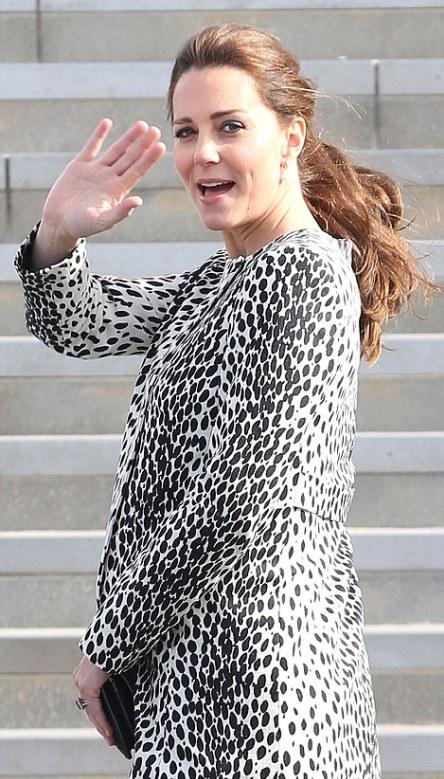 Σε αυτή την εμφάνιση της φορούσε ένα λεοπάρ παλτό της αγαπημένης της μάρκας, Hobbs. Το είχε ξαναφορέσει όταν ήταν έγκυος στον πρίγκιπα Τζόρτζ.