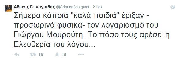 Επίθεση από αγνώστους δέχτηκε ο λογαριασμός του Γιώργου Μουρούτη στο Twitter με αποτέλεσμα να καταρρεύσει.