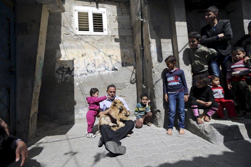 Τα τέσσερα παιδιά της οικογένειας, η οποία μένει σε ένα σπίτι τριών δωματίων σε έναν προσφυγικό καταυλισμό στη νότια Λωρίδα της Γάζας έχουν γίνει φίλοι με τα λιονταράκια και παίζουν μαζί τους όλη την ημέρα.