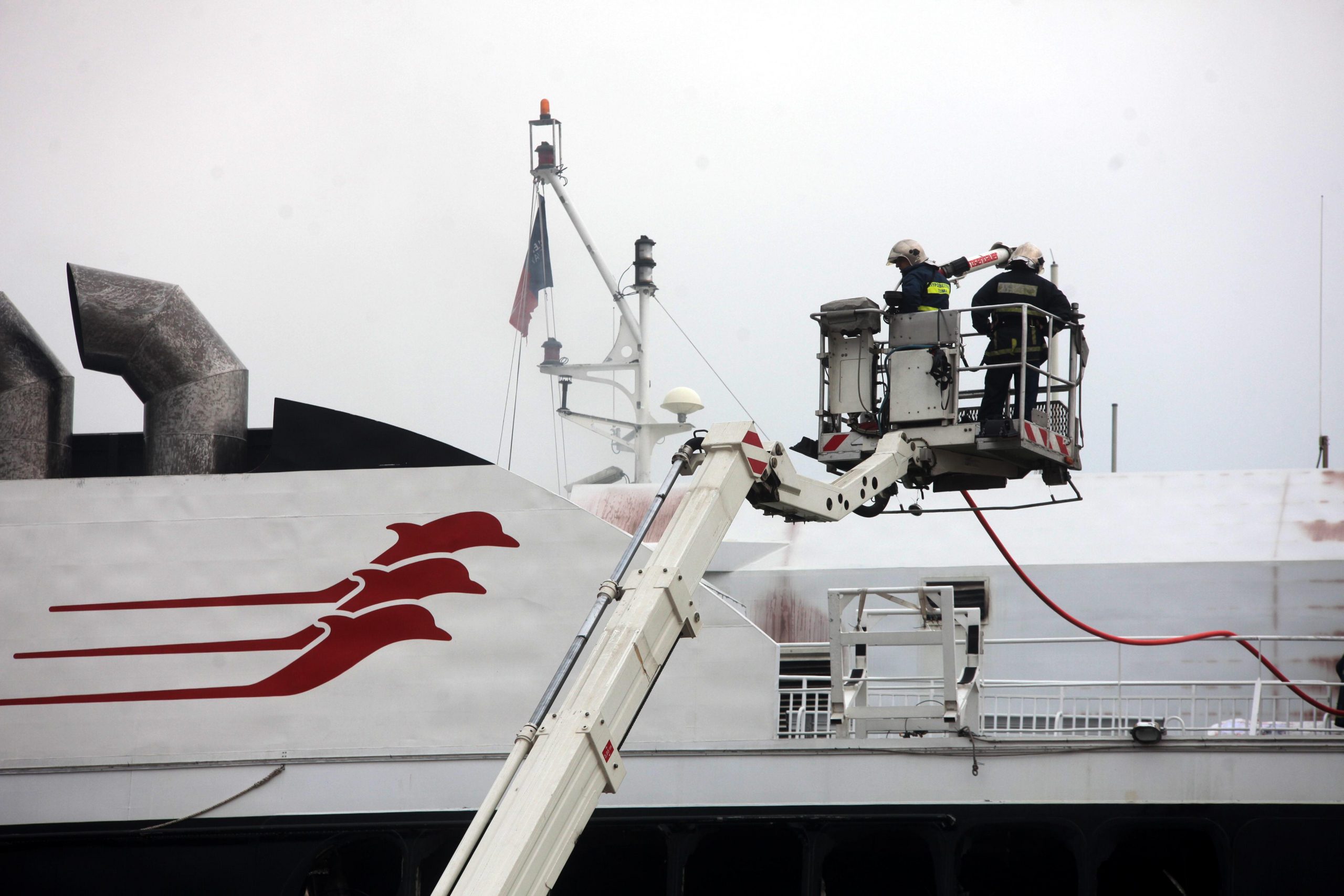 Σύμφωνα με το Λιμενικό, τα 21 άτομα από τα πέντε επισκευαστικά συνεργεία που εργάζονταν επί του πλοίου είναι καλά στην υγεία τους και αποβιβάστηκαν με ασφάλεια από το Highspeed 5 όταν εκδηλώθηκε η πυρκαγιά.