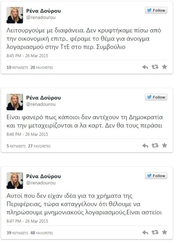 Το πεδίο του Twitter επέλεξαν ο Άδωνις Γεωργιάδης και η Ρένα Δούρου για να αντιπαρατεθούν γι ατα αποθεματικά της Περιφέρειας.