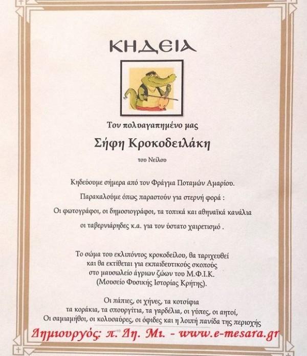 Το… κηδειόχαρτο για τον Σήφη τον κροκόδειλο (Photo)