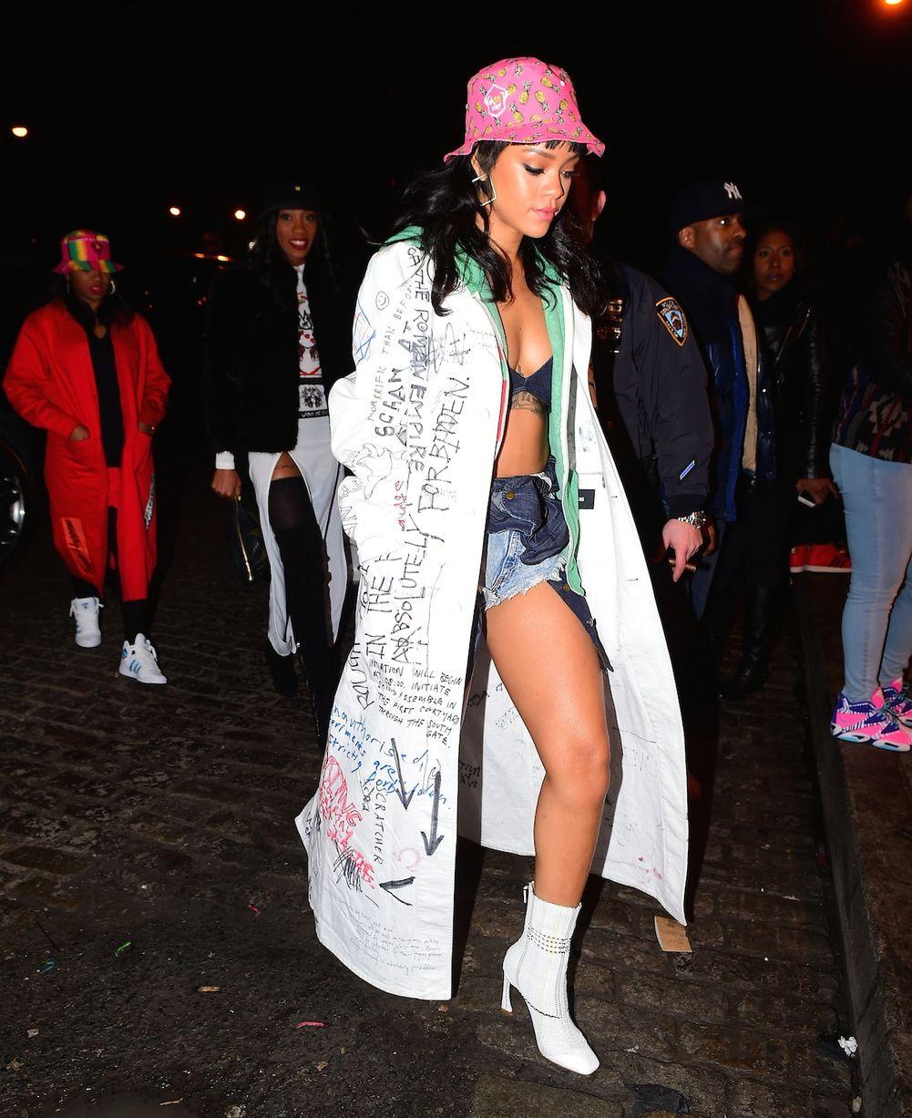 Έχουμε δει δεκάδες περίεργες δημόσιες εμφανίσεις της Ριάνα τα τελευταία χρόνια, ωστόσο η ίδια αποφάσισε να το πάει ακόμα πιο πέρα. Αυτή τη φορά, η 27χρονη τραγουδίστρια εμφανίστηκε δημόσια, χωρίς ρούχα αλλά με ένα παλτό, καλύπτοντας μόνο τα επίμαχα σημεία της. Κερασάκι της τούρτας το … μωρουδίστικο καπέλο της.