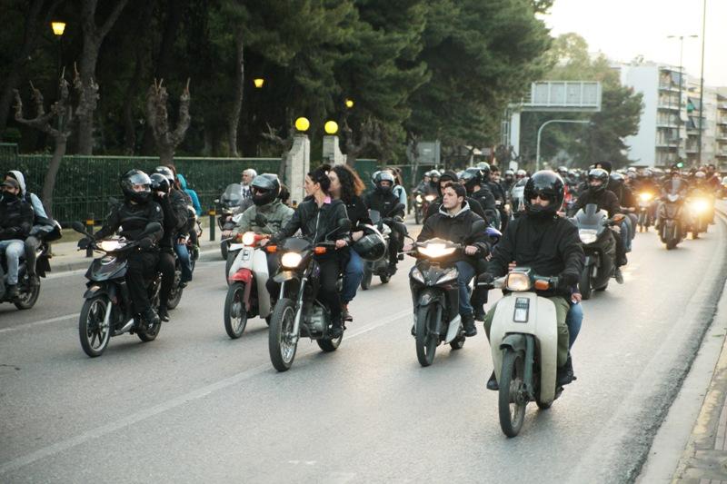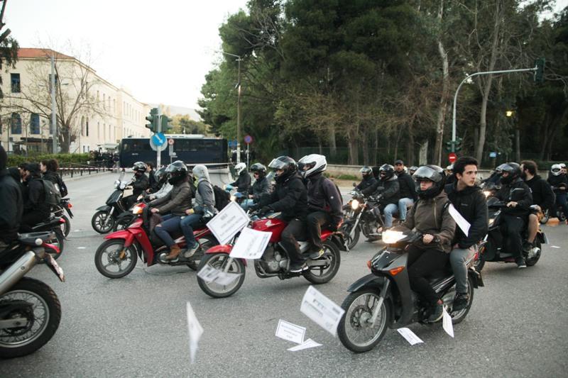Λίγο μετά τις 7 το απόγευμα ξεκίνησε από τα Προπύλαια μηχανοκίνητη πορεία αντιεξουσιαστών, με περίπου 100 μοτοσικλέτες.