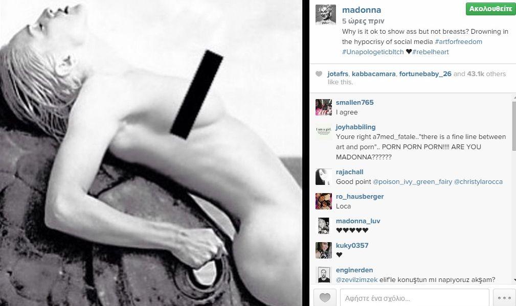 Στην λογοκρισία που υπέστη από το Instagram αντέδρασε η βασίλισσα της ποπ, Μαντόνα, όταν διαχειριστές του κοινωνικού δικτύου διέγραψαν μια τόπλες φωτογραφία που η ίδια είχε αναρτήσει στον προσωπικό της λογαριασμό.