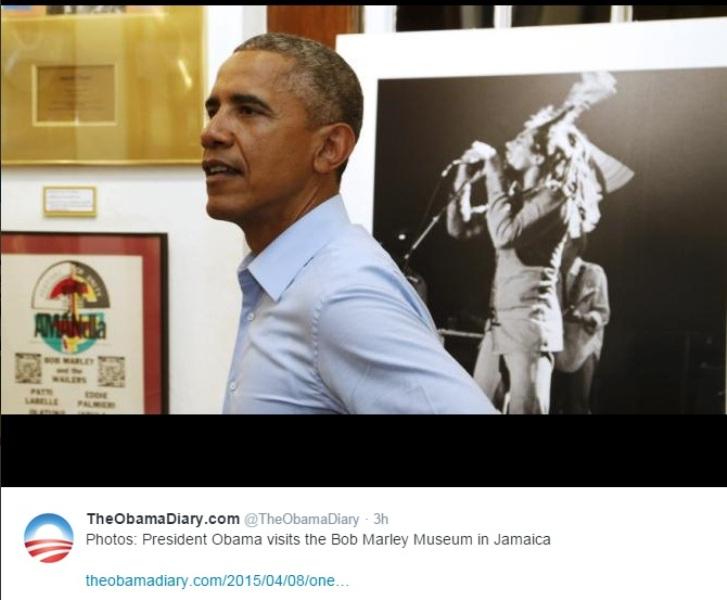 Ο Μπαράκ Ομπάμα έφτασε το βράδυ της Τετάρτης στην Τζαμάικα και μία από τις πρώτες στάσεις που έκανε ήταν στο μουσείο που έχει δημιουργηθεί στη μνήμη του Μπομπ Μάρλεϊ. Mάλιστα το ανακοίνωσε και στο Twitter στο λογαριασμό @TheObamaDiary.