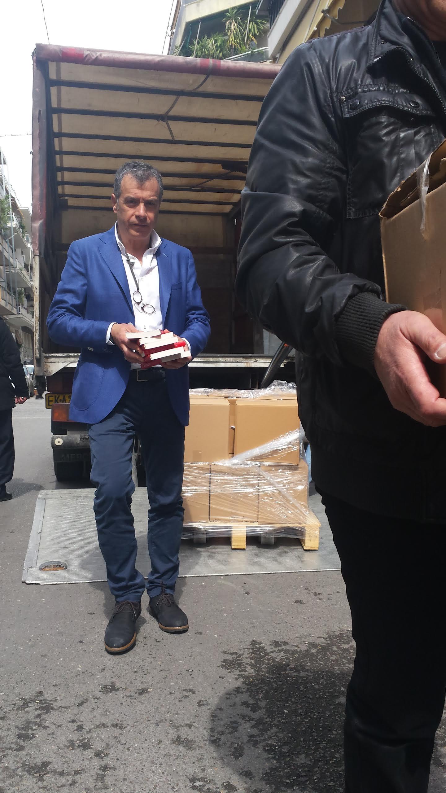 Φαίνεται ότι οι διακοπές του Πάσχα δεν πτοούν τον επικεφαλής του Ποταμιού Σταύρο Θεοδωράκη, ο οποίος μοίρασε αντίτυπα του βιβλίου του κόμματος.