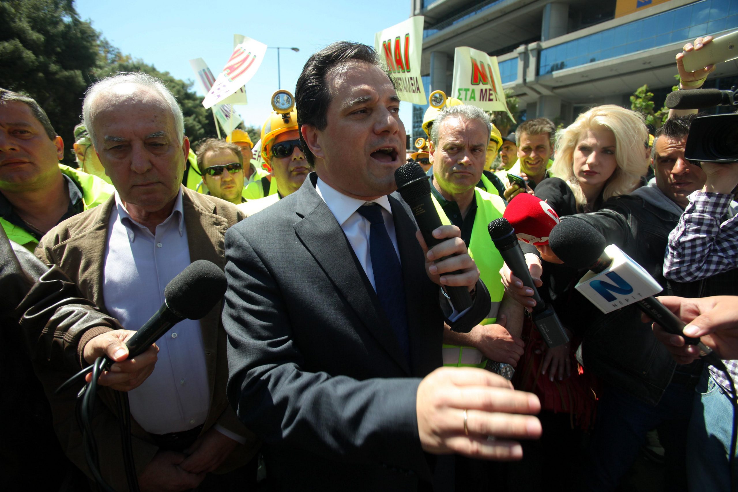 Με ενθουσιασμό υποδέχτηκαν τους μεταλλωρύχους της «Ελληνικός Χρυσός» από τις Σκουριές, οι στενοί συνεργάτες του πρώην πρωθυπουργού Άδωνις Γεωργιάδης και Γιώργος Μουρούτης.