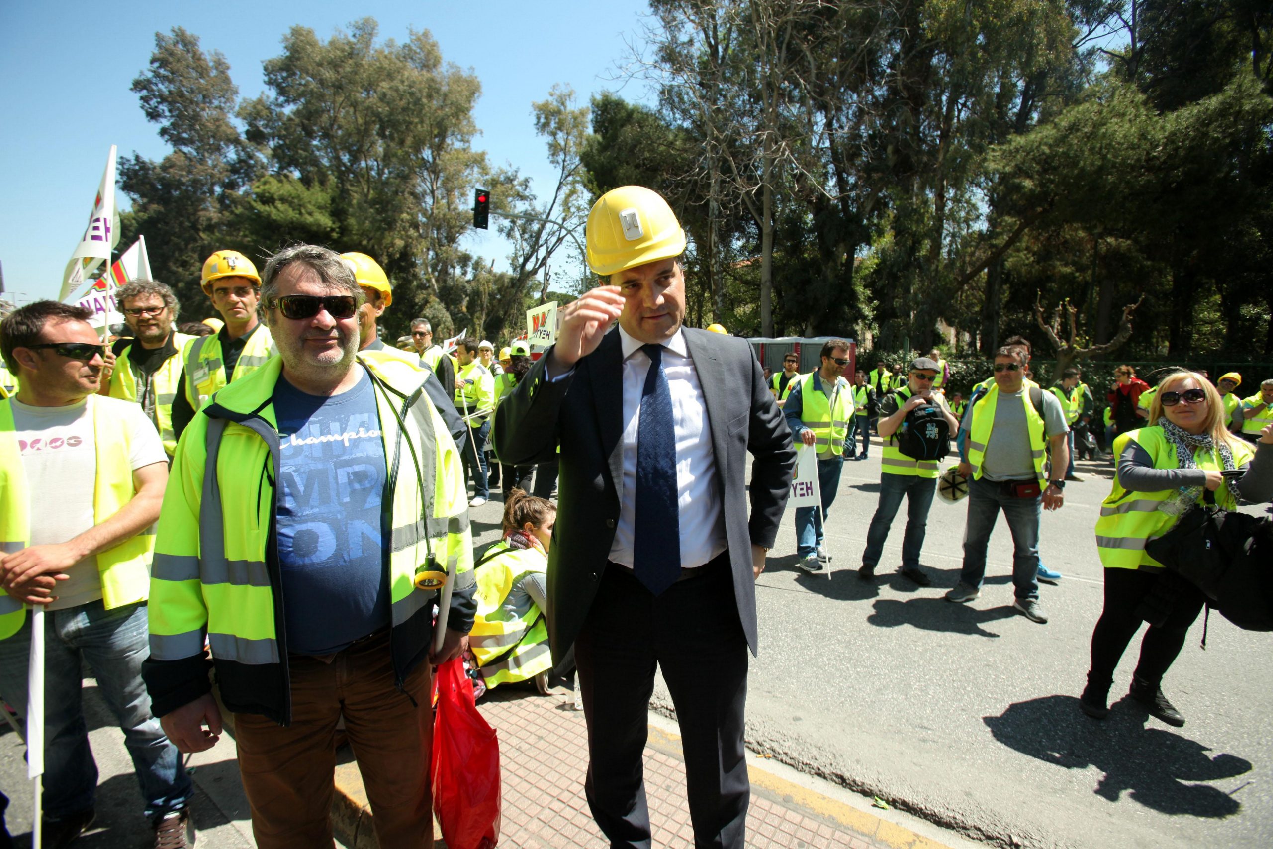 Ο πρώτος, γνωστός για την παρορμητικότητά του, βρέθηκε δίπλα στους συγκεντρωμένους κατά τη διάρκεια της πορείας που πραγματοποίησαν, συνομίλησε μαζί τους και δεν δίστασε να φορέσει ένα κράνος για να δείξει «έμπρακτα» τη συμπαράστασή του.