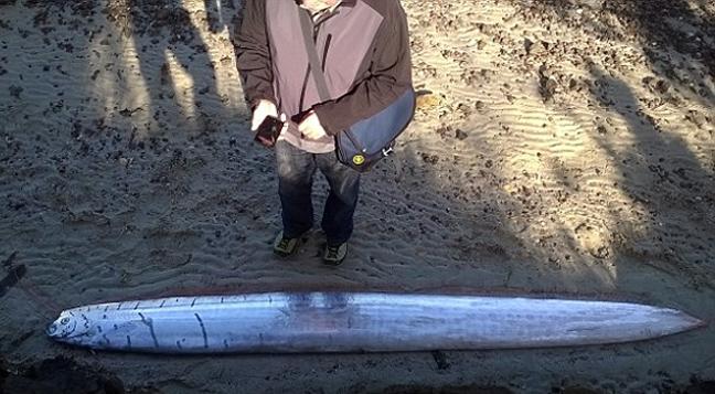 Ένα από τα θρυλικά ψάρια – κουπιά, μήκους 3 μέτρων, ξεβράστηκε σε ακτή της Νέας Ζηλανδίας. Το γιγαντιαίο ψάρι ζει στα σκοτεινά νερά των ωκεανών, δηλαδή σε πολύ μεγάλα βάθη, μπορεί να φτάσει τα έντεκα μέτρα μήκος, κολυμπά κάθετα και όπως έχει διαπιστωθεί, τρώει την ουρά του.