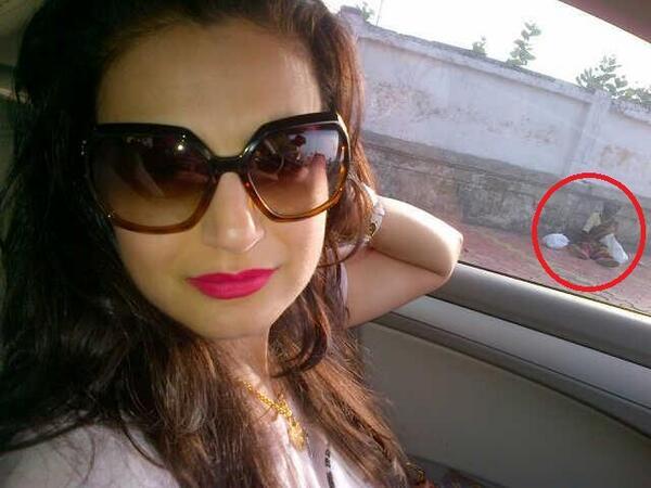 Η γυναίκα που ποζάρει με… χαριτωμενιά μπροστά στη δυστυχία του διπλανού της…