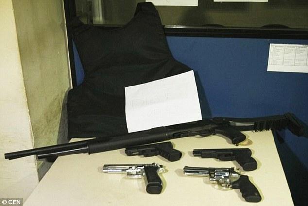 Εκπρόσωπος της αστυνομίας ανέφερε ότι βρέθηκαν 4 περίστροφα, ένα κυνηγετικό όπλο κι ένα αλεξίσφαιρο γιλέκο στο αυτοκίνητο.