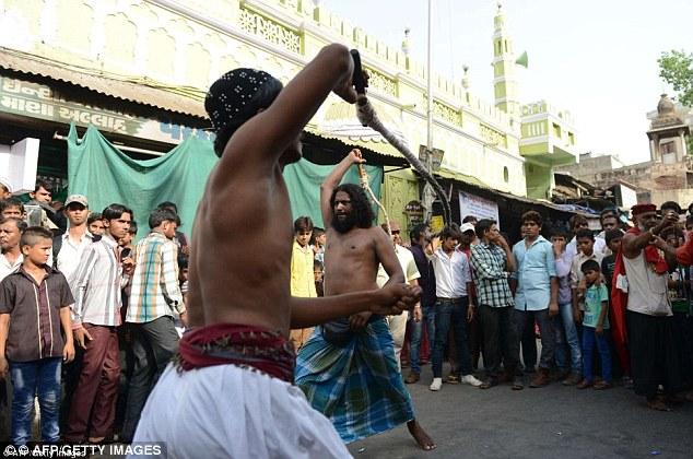 Οι θρησκευόμενοι αυτοβασανίζονται, πιέζοντας τα μάτια τους προς τα έξω και χτυπώντας τα κορμιά τους με μαστίγια, τιμώντας τον θάνατο του ιδρυτή του δόγματος των Σούφι.