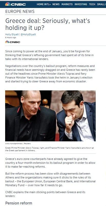 100 ημέρες από την άνοδο του ΣΥΡΙΖΑ στην εξουσία το CNBC αναλύει σε άρθρο το πού “κολλάει” η διαπραγμάτευση της Ελλάδας με τους δανειστές.