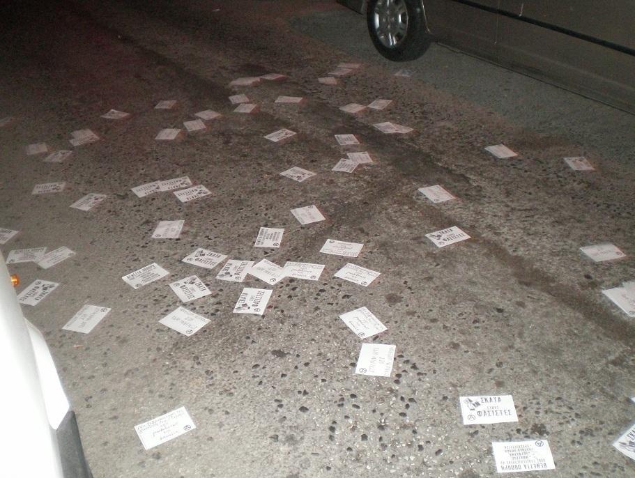 Ομάδα αγνώστων «επισκέφθηκε» το σπίτι της προφυλακισμένης χρυσαυγίτισας ανθυπαστυνόμου Βενετίας Πόπορη, έγραψε υβριστικά συνθήματα σε τοίχους και πέταξε αντιφασιστικά τρικάκια.