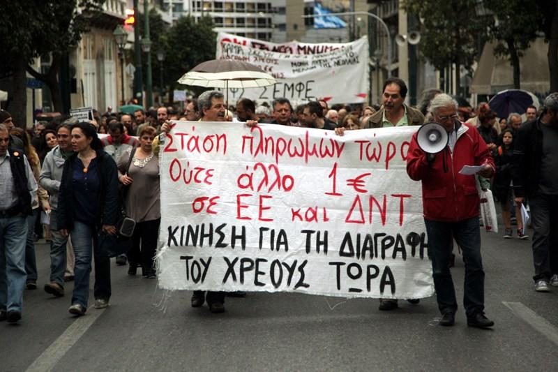 Άνοιξαν οι δρόμοι στο κέντρο της Αθήνας καθώς ολοκληρώθηκε η πορεία των μελών της «Κίνησης για τη Διαγραφή του Χρέους Τώρα». Οι διαδηλωτές πραγματοποίησαν συλλαλητήριο το απόγευμα της Δευτέρας στα Προπύλαια και στη συνέχεια πορεία προς τα γραφεία της Ευρωπαϊκής Ένωσης.