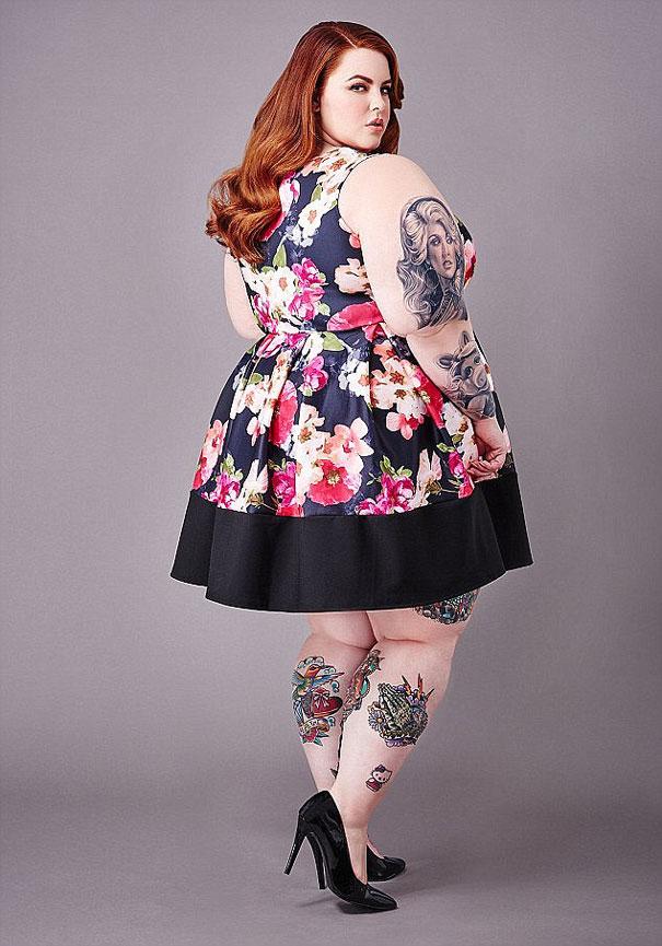 Η Τες, εκτός από το μέγεθός της (φοράει αγγλικό νούμερο 26, δηλαδή αμερικανικό 22 και ελληνικό περίπου 60) διαφέρει από τα συνηθισμένα μοντέλα και λόγω των πολλών τατουάζ της.
