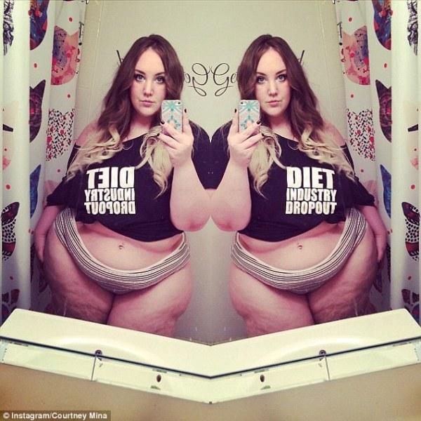 Τα πολλά παραπανίσια της κιλά όχι μόνο δεν την πτοούν, αλλά τα έχει κάνει … σημαία. Η Κόρτνει Μίνα τις περισσότερες ώρες μέσα στο σπίτι κυκλοφορεί μόνο με τα εσώρουχα της και συχνά με μία κορώνα. Και δεν το κρατάει μόνο για τον εαυτό της. Ανεβάζει συνέχεια φωτογραφίες της στο μπλόγκ μόδας που διατηρεί με σκοπό να ενισχύσει την αυτοπεποίθηση κι άλλων γυναικών που θεωρούνται χοντρές. Κι όλα αυτά γιατί η Μίνα είχε υποστεί bullying στα σχολικά της χρόνια γεγονός που τότε την είχε κάνει ντροπαλή.