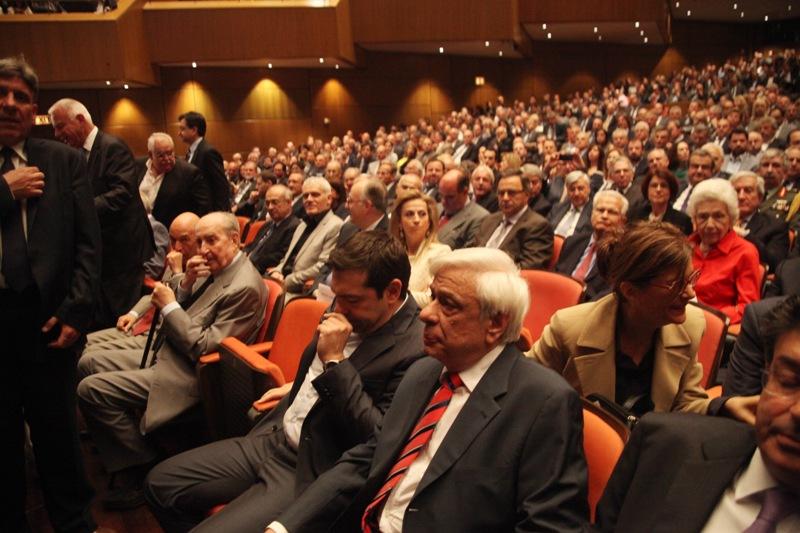 Ο φωτογραφικός φακός απαθανάτισε τον πρωθυπουργό να συνομιλεί έντονα με τον Πρόεδρο της Δημοκρατίας, αλλά και μια θερμή χειραψία μεταξύ του Αλέξη Τσίπρα και του επίτιμου Προέδρου της ΝΔ Κωνσταντίνου Μητσοτάκη.