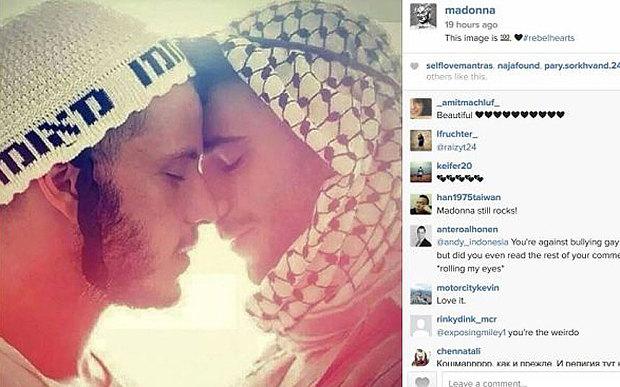 Μια ακόμα προκλητική φωτογραφία ανέβηκε στον προσωπικό λογαριασμό της Μαντόντα. Η «Βασίλισσα της Ποπ» έχει προκαλέσει πληθώρα συζητήσεων για την επίμαχη φωτογραφία που απεικονίζει δυο νεαρούς άντρες, έναν Εβραίο και έναν μουσουλμάνο λίγο πριν φιληθούν.