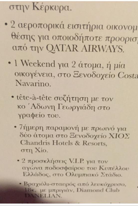 Σε λίστα με δώρα φιλανθρωπικής εκδήλωσης εμφανίστηκε το όνομα του Άδωνι Γεωργιάδη, ακριβώς κάτω από την προσφορά μιας εβδομάδας διανυκτέρευσης για 2 άτομα σε ξενοδοχείο, όπως φαίνεται σε ανάρτηση του προσωπικού του λογαριασμού στο Twitter.
